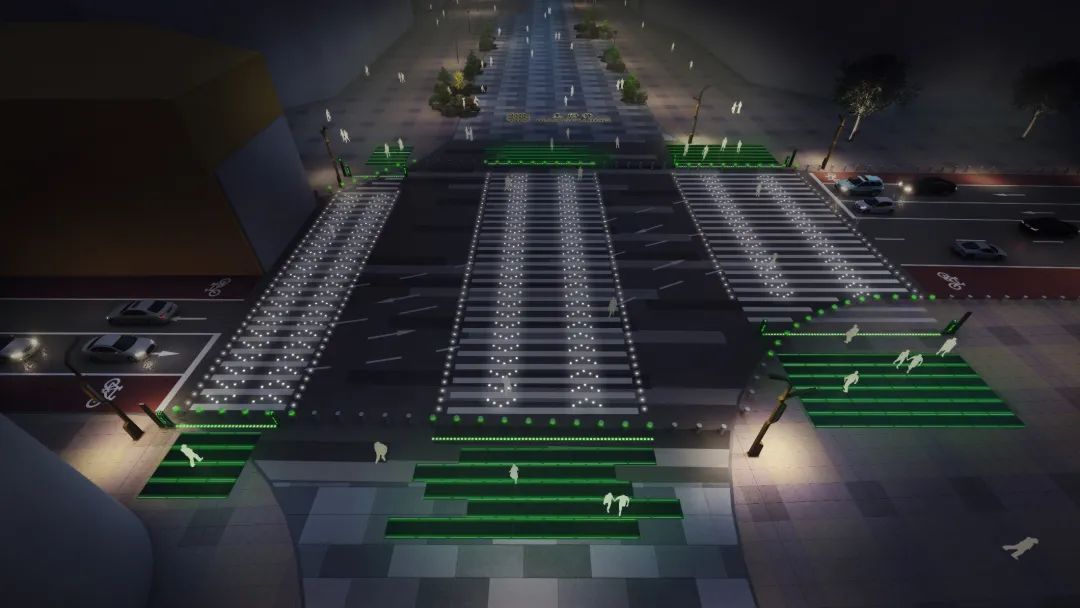 项目充分体现安全、智慧、绿色的设计理念,智慧过街系统的构成包括智慧斑马线、智慧灯杆、语音智能过街提示系统、地面亮化字体、太阳能城市离网微电站、新型太阳能智慧城市总控平台共五个组成部分。