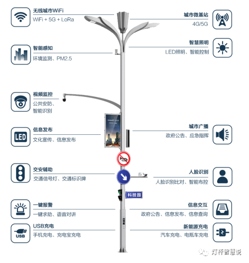 它还能实时获取人流和车流数据、进行视频智能分析、广播管理。通过分析人流、车流的数据,实时掌握城市交通情况,方便有关部门快速调度。当路上失火,灯杆可以快速识别火灾情况并同步给消防部门,使专业人员能第一时间到达现场。同时,广播通知周围市民远离火灾现场,最大程度减低伤害。