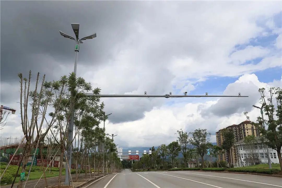 在云南腾冲西山坝新城区里,52根智慧灯杆尽收眼底。据了解,此前的路灯有些昏暗,自从换上了崭新的路灯后,不但形状非常漂亮灯光也亮了很多,看起来很养眼。