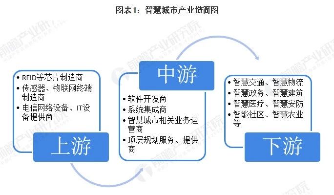 从产业链来看,智慧城市建设涉及的主体包括:政府、运营商、解决方案提供商、内容及业务提供商以及下游各应用领域等。从智慧城市解决方案来看,其产业链上下游涵盖了RFID等芯片制造商,传感器、物联网终端制造商,电信网络设备、IT设备提供商等;中游包括应用软件开发商、系统集成商、智慧城市相关业务运营商以及顶层规划服务提供商等多种科技型企业;下游应用领域包括智慧交通、智慧物流、智慧政务、智慧建筑等。