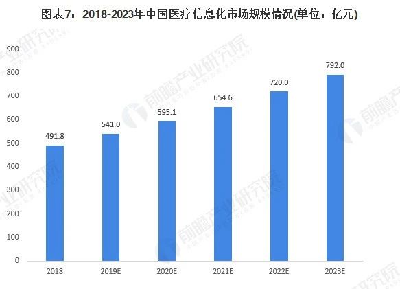 智慧医疗方面,医疗信息化是智慧医疗的重要方面,2019年5月,IDC在新发布的《中国医疗行业IT市场预测,2019-2023》报告中修正了预测。2018年中国医疗行业的IT花费实际达到了491.8亿元。因此,IDC重新预测认为医疗信息化市场在2018至2023年的年复合增长率将为10%,按照这一预测,2019年我国医疗信息化市场规模将在541亿元左右。