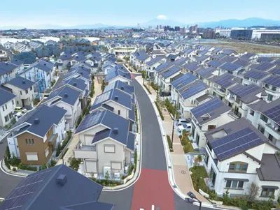 走进位于日本神奈川县的藤泽生态智慧城,城市入口两侧绿化带铺设的太阳能板首先映入眼帘。在居民住宅屋顶、公共设施顶部、路灯顶端等处,也都安装着密集的太阳能板。