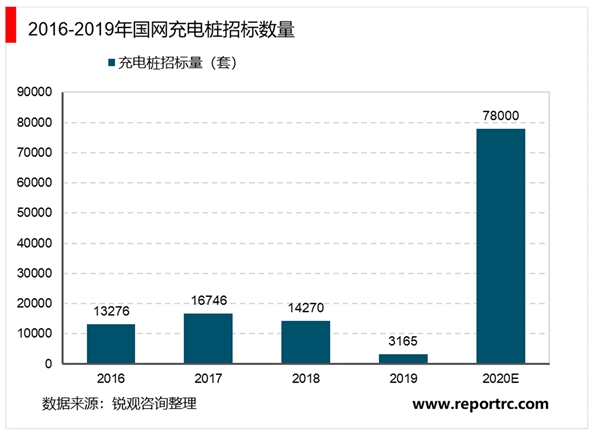 国家电网作为最早进入充电桩行业的建设方和运营商,同时也是国内最大的充电桩公开招标企业,其招标需求和中标企业对行业有较强的借鉴意义。据国家电网充电设备招标公告显示,近4年来国网每年进行三批次的充电桩招标,2016-2019年分别招标13276、16746、14270、3165套充电设备。