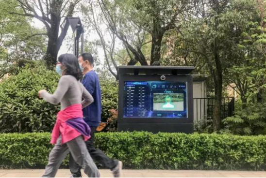 航天基地的公园内,智慧跑道可实时记录跑步人员的里程、心跳等数据信息,实现运动结果全民排名;太极爱好者可以通过AI太极设备,跟随屏幕上的太极教练练习,摄像头会实时采集动作,结束后生成评分;“银杏”造型的智慧景观灯可提供照明、监控、一键报警及手机充电功能。