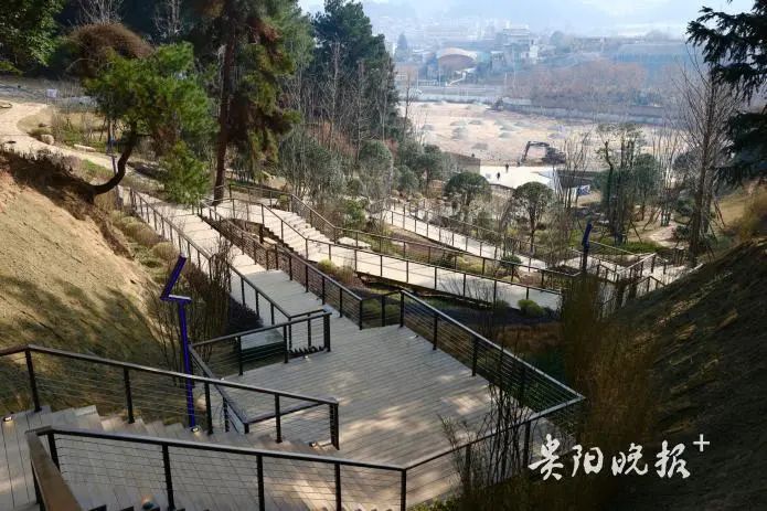 公园内栈道总长约 5000 米,中途累了也不用担心,公园内设置了多个健身平台和休息平台供游客休憩使用。目前,栈道建设已进入尾声。