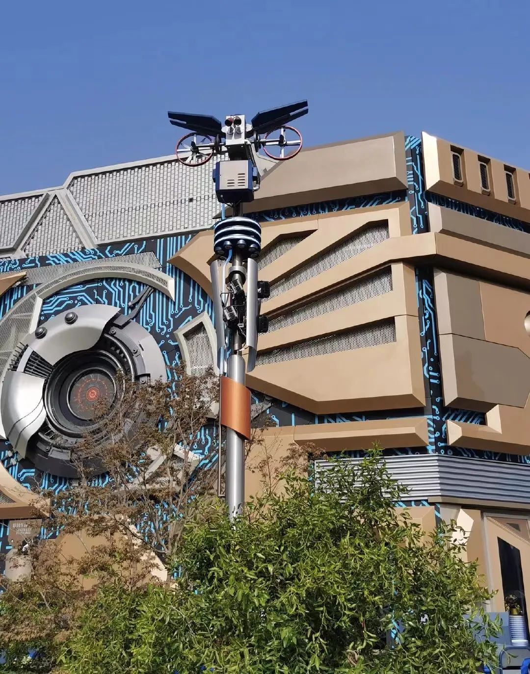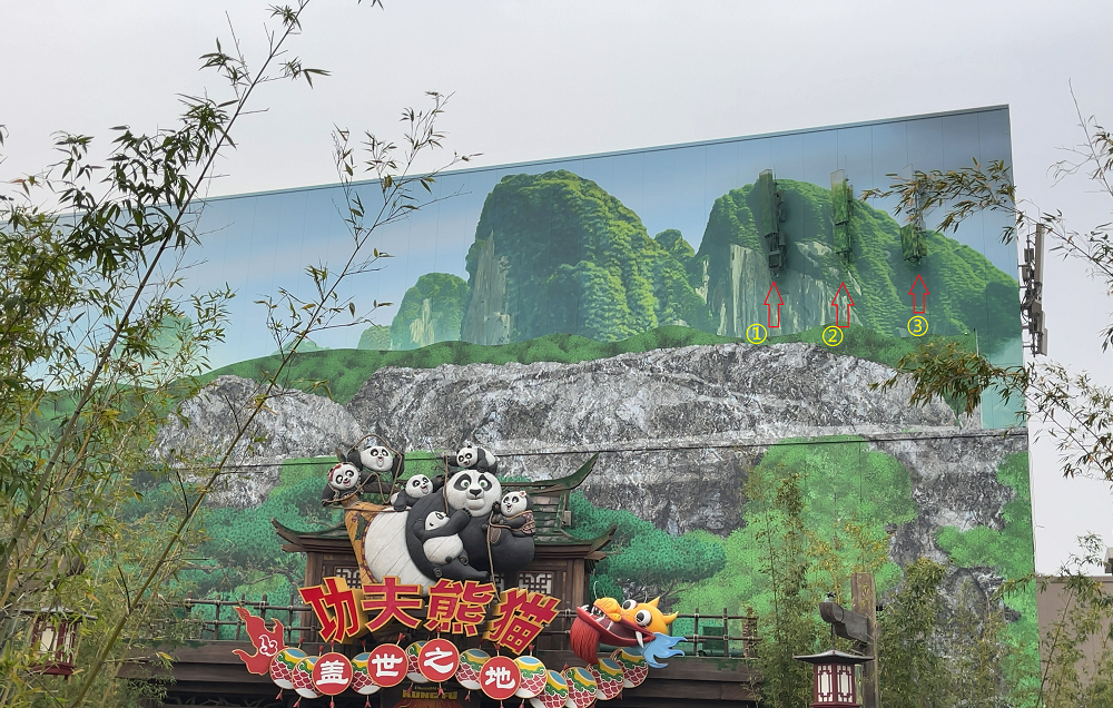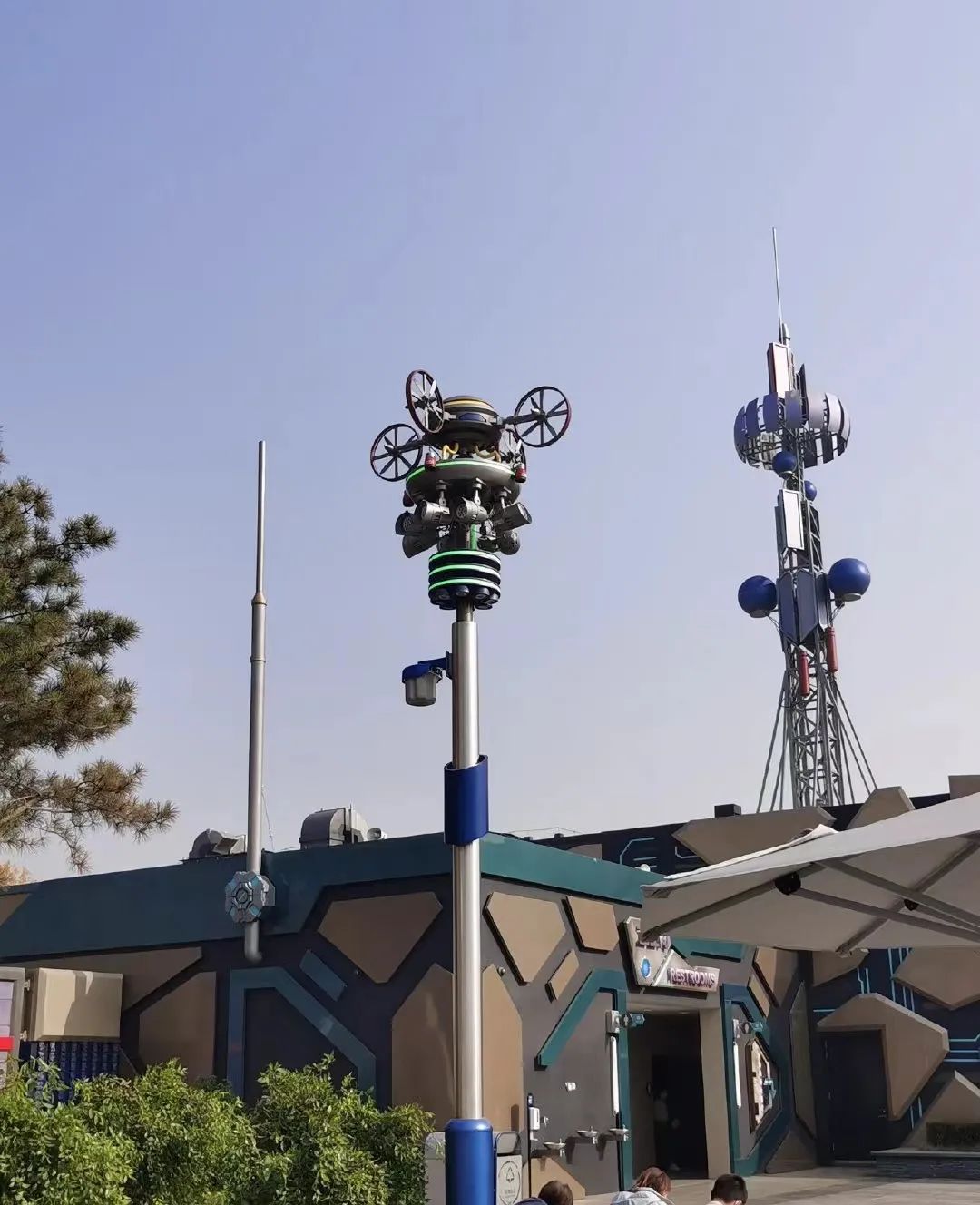 原来,在北京环球影城一期园区,已经建了15个宏基站和20处灯杆微基站以及75万㎡的室分系统,可实现园区5G全覆盖,而这些基站又采用了“建站不见站”的方式,与环球影城的7大园区融为了一起,不仔细观察的话很难认出。